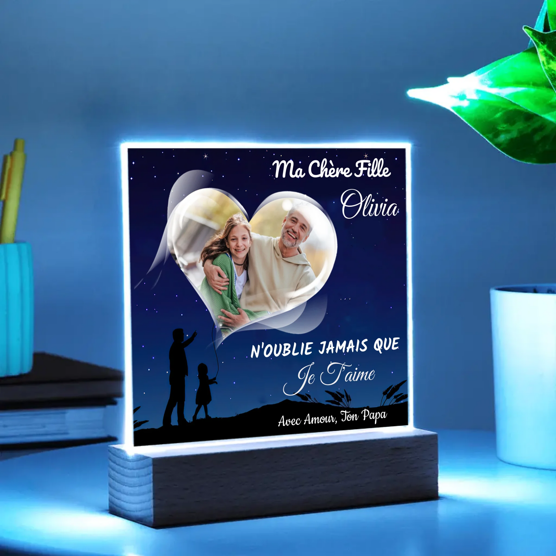 Offrez un cadeau unique et intemporel qui capture la tendresse et l'amour paternel. Notre plaque en acrylique personnalisée est un souvenir gravé dans le cœur et illuminé par la lumière.